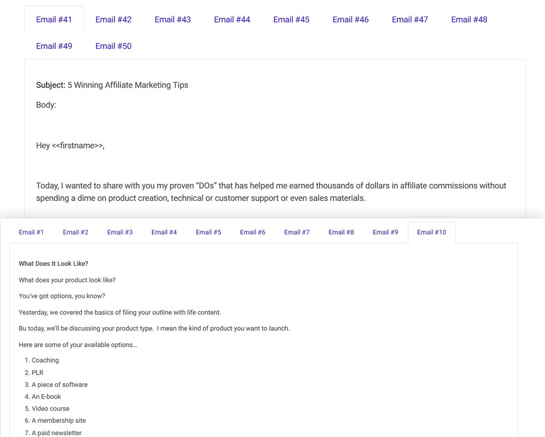 - These are done-for-you emails that you can send to your subscribers to get them to know you, like you and trust you