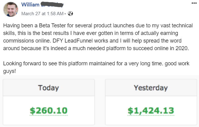 It doesn't get realer than this. I am NOT one of those marketers who solely rely on launch profit to earn a living online so there's no reason to promise you thousands of dollars that you may not achieve in 30 days. I am about to welcome you into my tribe so I have to build our business relationship on "Trust". Whether you are a lazy fellow or even worse, DFY LeadFunnel will at least generate $1880 per month for you if you quickly activate your account now that you're right in front of your PC. I can comfortably guarantee you $2k per month with this app.